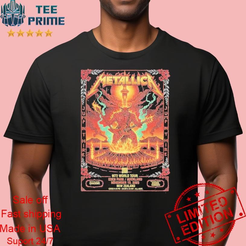 Original Metallica M72 Auckland World Tour New Zealand On November 19 2025 At Eden Park Jump In The Fire Demon Warrior Infernal Maori Volcano Ritual T Shirt